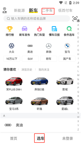 1、进入软件,点击选车-二手车;