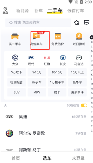2、点击高价卖车;