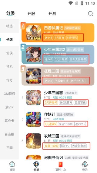 4、还能进入分类页面或福利中心,查找所需的游戏与礼包来操作。