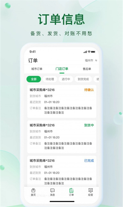 3、订单信息,包括各类备货、发货情况。对账无需担忧,所有订单信息都能及时查看。