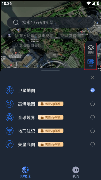 你也可以直接搜索想看的景点,系统会帮你定位到该地点,不过VR功能需要开通会员才能使用。