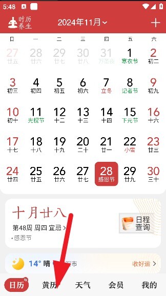 1、打开软件,点击黄历。
