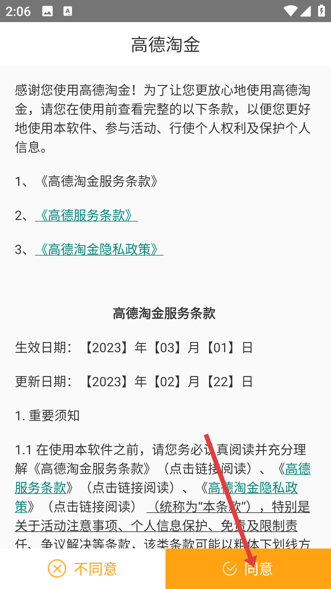 在使用高德淘金前,您需要仔细阅读《高德淘金服务条款》等相关文件,只有点击【同意】按钮后,才能使用该软件的各项功能并参与相关活动。