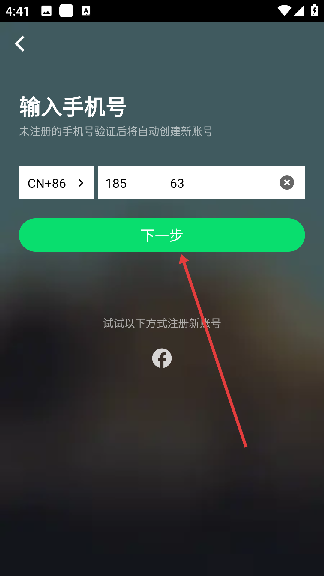 2、在输入手机号页面输入要注册的手机号。