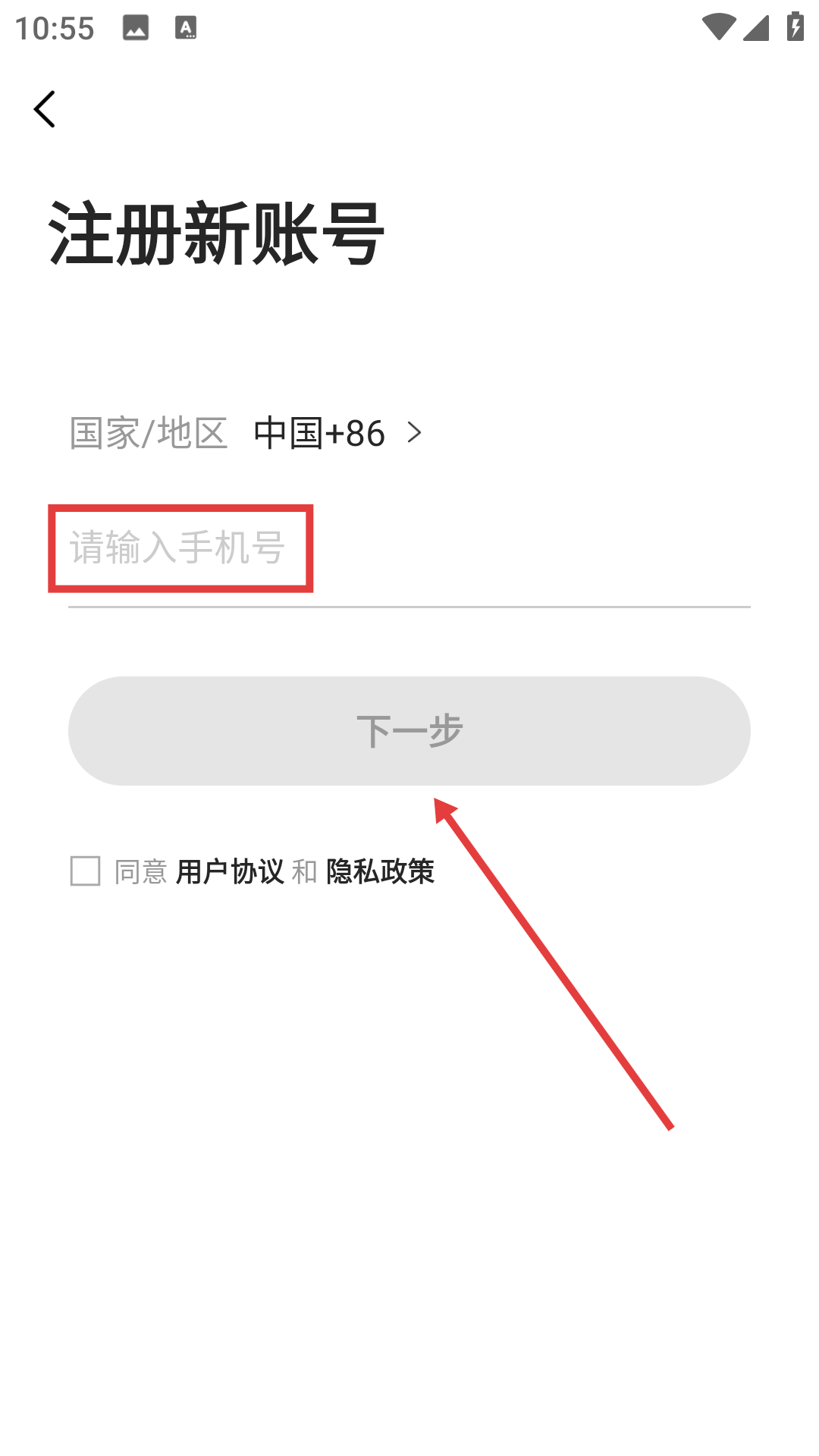 3、在注册新账号页面输入手机号,点击【下一步】,进入完善资料页面。