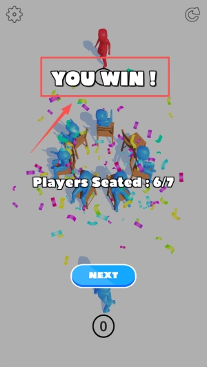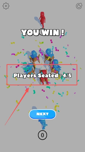 2、看到画面中央显示you win字样和玩家就座人数统计,按下next键即可继续挑战后续关卡内容。