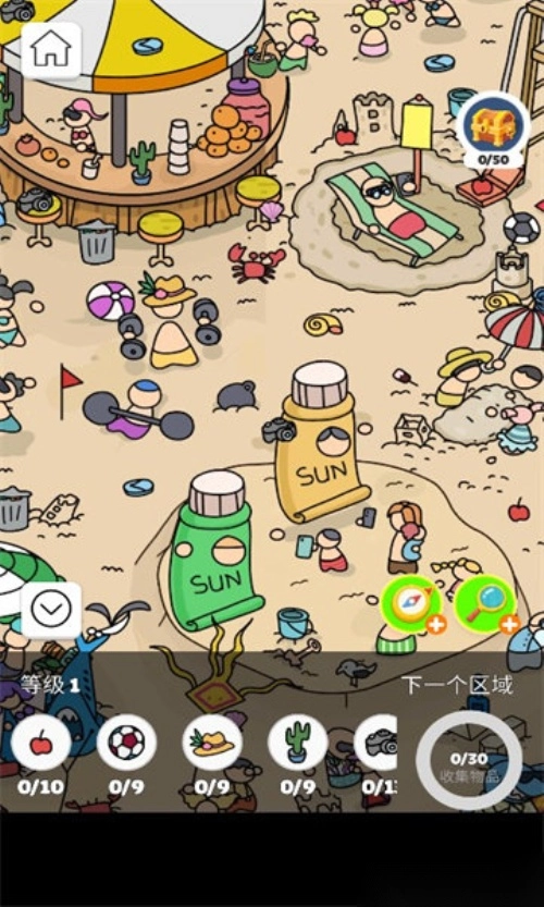 2. 设有指南针和放大镜小道具帮助玩家快速定位宝藏位置,不怕卡关。