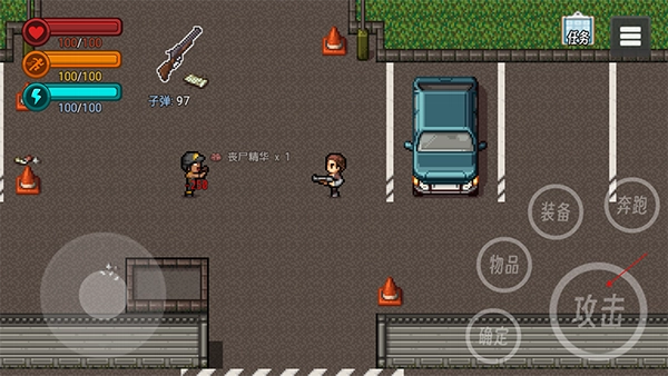 3、在面对丧尸时摁下攻击键射击(在手上是枪的状态),杀死丧尸可以得到丧尸精华