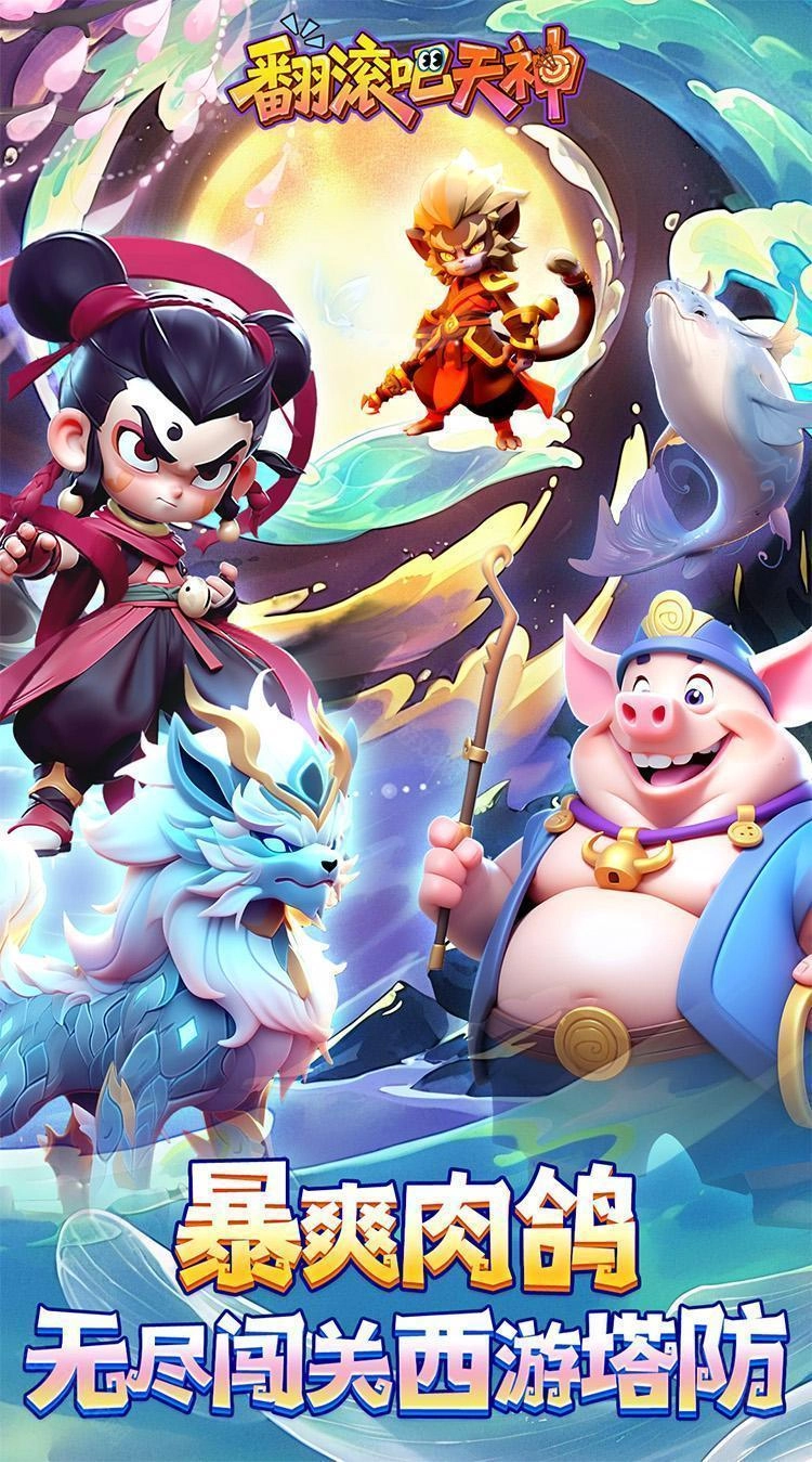翻滚吧天神(肉鸽0.1折西游塔防)是一款休闲塔防游戏,经典的塔防战争玩法,加入东方玄幻元素,丰富有趣的策略战斗。这是一款东方玄幻美术风格的休闲塔防策略游戏,集Roguelike、卡牌策略、爬塔副本、多人对战等核心玩法于一身,游戏将塔防策略的精髓与休闲娱乐完美融合,让玩家体验真实的塔防对战过程,还有更多惊喜福利、开局送千连抽,百款神明皮肤时装,快来创造属于你的塔防传奇吧!