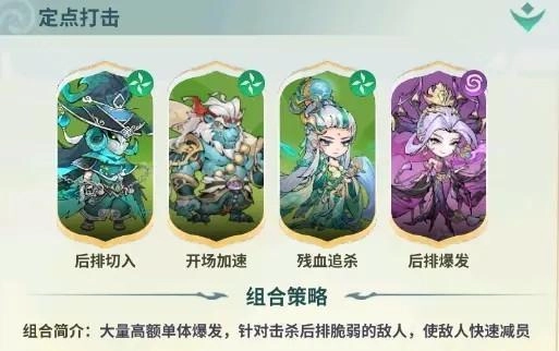 优势:利用青狮精开局进场给全队加速的被动,其余输出根据技能效果点杀敌方后排和残血目标,在最短时间内制造敌方减员,在人数差的优势下赢得后续残局。
