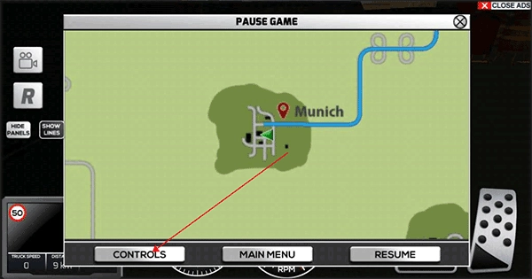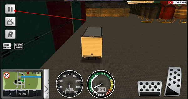 1、先安装好“Truck Simulator Europe 2 Free”这款游戏,进入游戏界面后,找到图中所示的位置点击,即可开始游戏。