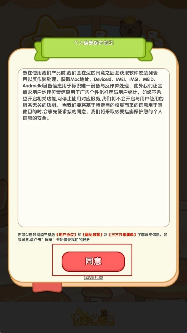 2、在我们进入游戏之后,点击“同意”按钮,进入下一步,