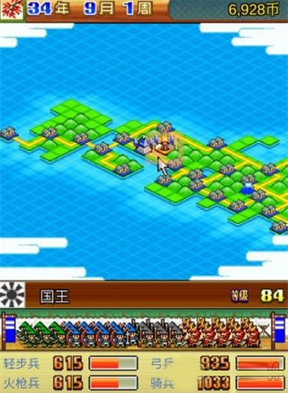 5、提高部队的合理布局部分,因为游戏分为国家团战和村庄战,所以还要靠打国王的部队来布局自己人物的位置,已经提高各种技能,还有对团战部队的兵力提高。
