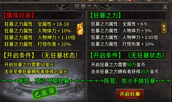 魔尊狂暴:金元开启,比普通狂暴之力加成高一倍