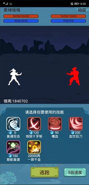 1、如少林掌门戒色,首先,用血刀斩给他挂一个流血效果。