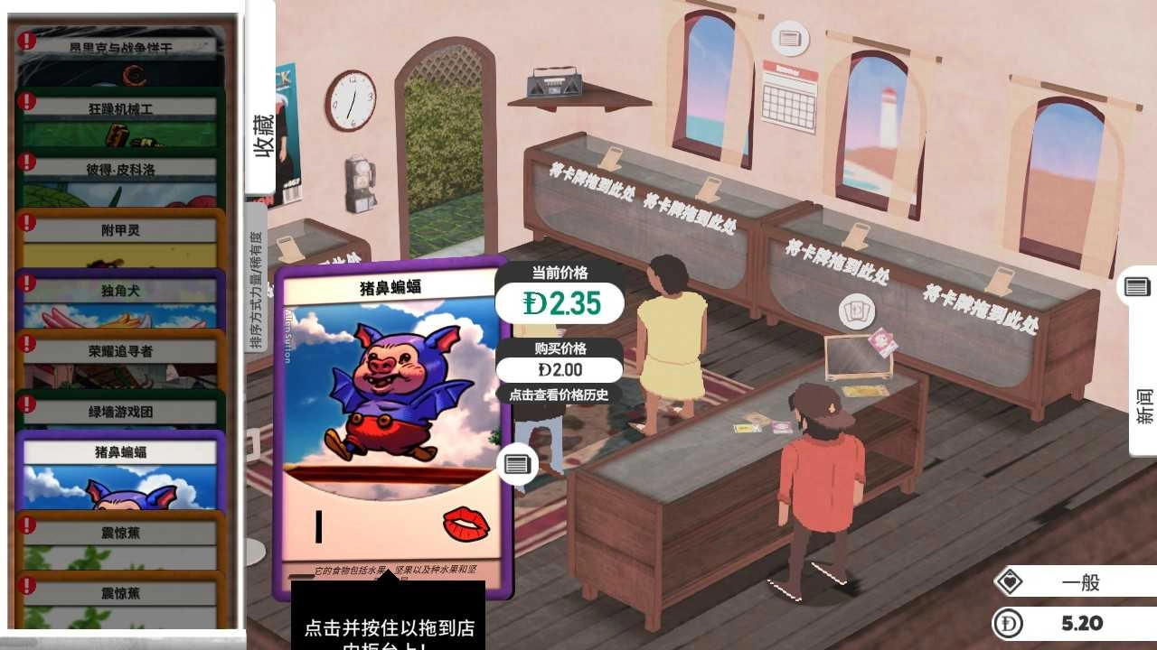 在《卡牌之王》这款游戏里,玩家将扮演卡片商店的经营者。日常经营中,不仅要时刻关注行业新闻和市场动态,还要仔细留意店内库存情况,及时补充上架新的卡牌。对于卡牌的定价,玩家拥有充分的自主权,但切忌漫天要价、宰客欺客,否则会对店铺声誉造成负面影响。同时,要用心维护与顾客的良好关系,努力将普通顾客转化为忠实的回头客。游戏采用复古像素风格的画面设计,能为玩家带来十分出色的游戏体验。