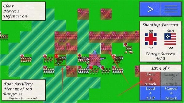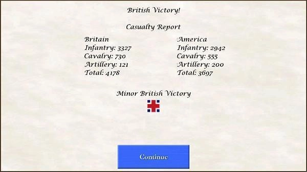 2、萨拉托加战役分为两国,玩家将控制英方军队对战美军,点击兵种再点击目标位置可以进行移动;
