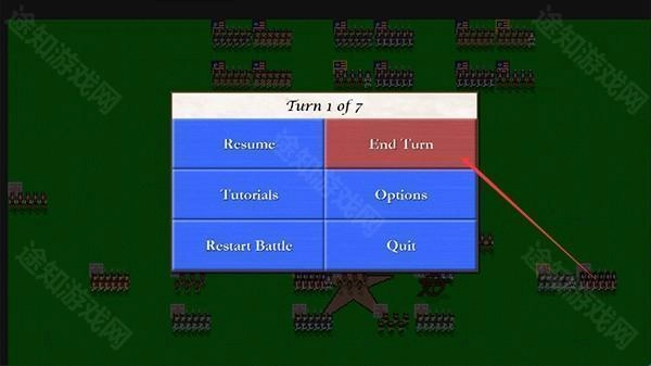 4、当我方兵种全部移动完成后,点击“End Turn”即可结束本轮,然后轮到AI进行操作;