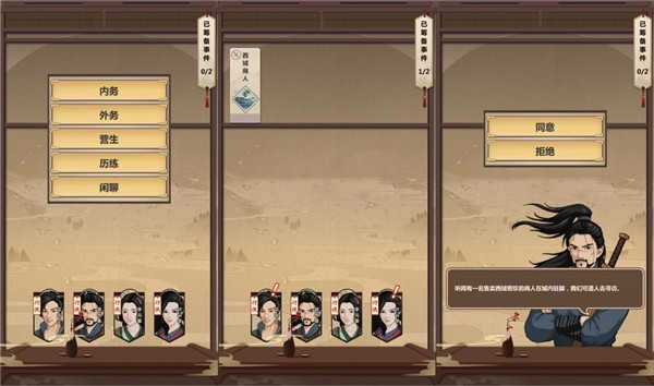 1.2.武功文化可以随便选。但俩专业必须一个雕塑一个工匠,施舍5两也是必须的(实际上雕塑这个也许不是必要选的,不过工匠最好开局就选,从头到尾收益都挺大的,具体后面会说到)。把包里江湖杂谈卖了,桌上钱收拾收拾,出门最低65两,准备起飞。此时开始默念——不要轻易消耗时间!