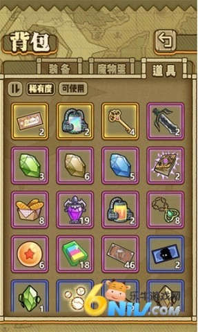 白色边框的道具和装备为普通,绿色边框为精致,蓝色边框则是极品。紫色和橙色边框的道具分别为史诗和传说,获取难度相较其他几种要高一些。玩家可以根据道具的描述获取来源,白色品质的材料最容易刷,绿色次之,而蓝色和紫色则需要通过探索和金币或氪金购买。