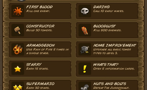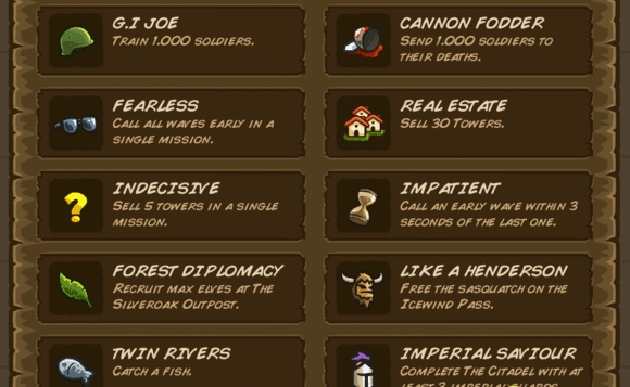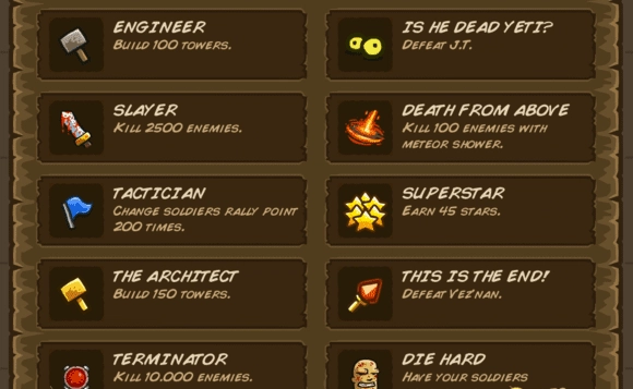 炮灰,士兵累积牺牲1000人。这个成就的完成也有速成法,找一个BOSS的关卡,前期攒钱,到BOSS来的时候,迅速的造兵等待BOSS的秒杀即可。杀死之后将兵营卖掉,然后重新建造,不断的重复即可。