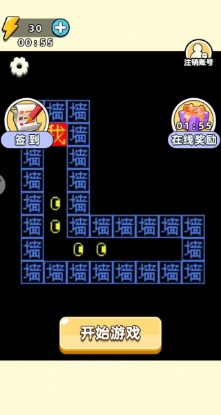 1、进入游戏后,你会看到角色被困在一堵墙中,要吃掉金豆才能闯关成功。