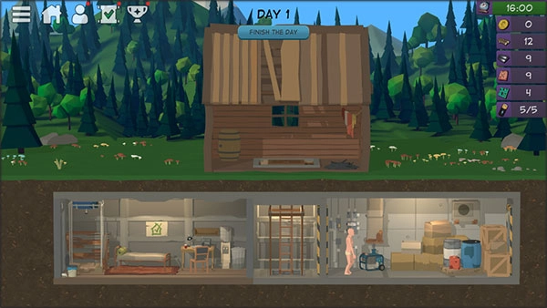 5、到了晚上,回到庇护所睡觉,点击右上方的时钟可以加快时间。