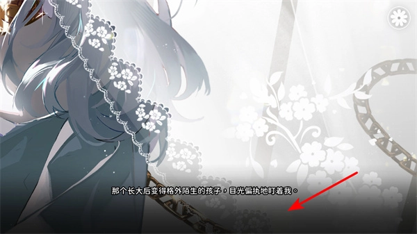1、推动剧情进展,点击剧情界面的推进区域,阅读有关长大后变得陌生的孩子的剧情内容,熟悉角色关系与故事背景,推进主线剧情。