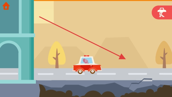 1、点击游戏首页的播放按钮,进入恐龙变形汽车模式,开启一段趣味驾驶之旅。