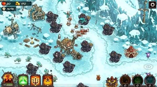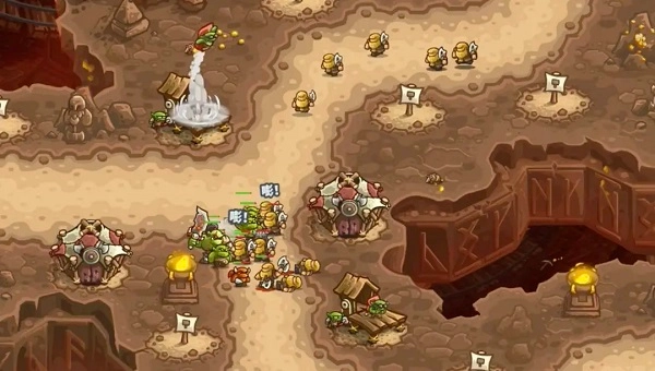 如:老城回廊这场战役,敌军会从上下两路进攻我方阵地,且前期的杂兵数量较多。所以在前期经济不充裕的情况,优先在T字路口建立两个炮台保证输出,利用英雄维鲁克的英雄技能与呆头鹅组成初期拦截攻势,就能顺利发育到后期。