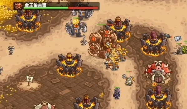 一进去就看到矮人王金王博古尔,极致奢华的纸醉金迷中,藏着一个成就彩蛋,西瓜处的唐老鸭,点击即可找到。十五波之后,矮人王会变身机甲加入战场,没有双抗的血牛,轻松杀掉,矮人剧情完结。