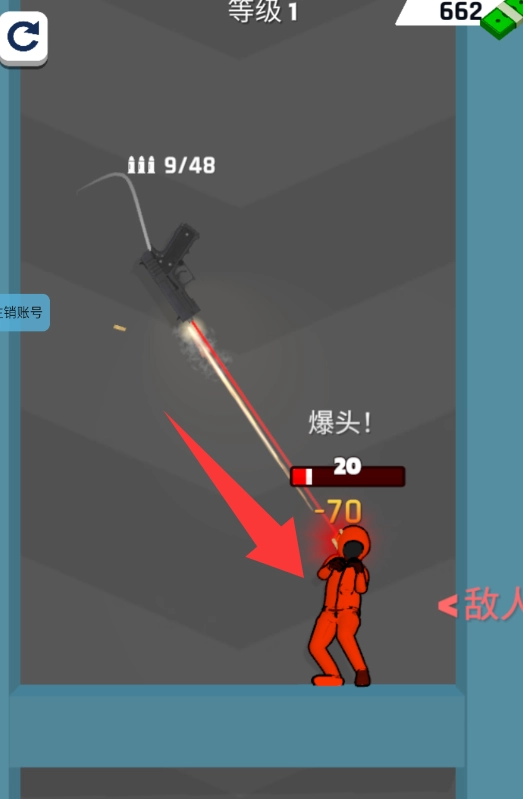 4、完善的成长体系设计,每关根据射击次数、爆头率等5项指标发放奖励,累积的钞票可解锁12种特色枪械,从基础手枪到科幻轨道炮。