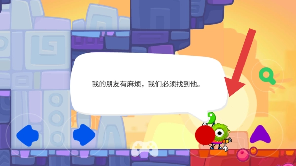 2、根据箭头的指引将移动到此区域,过程中能够遇到不同的障碍物,需要借助下方跳跃、移动的功能按键。