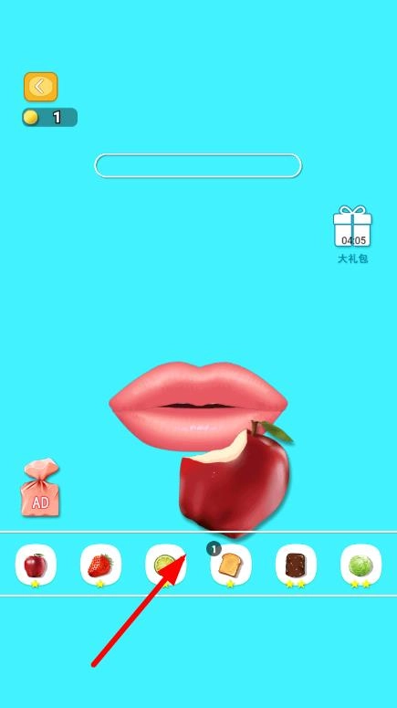 进入游戏后,先选择初始食物关卡,接着通过滑动屏幕来控制嘴唇的张合角度与幅度,对准食物完成“品尝”动作,以此熟悉嘴唇的操控方式。
