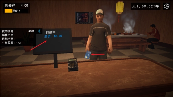 8、用晚餐之后就会进行结账,点击客人吃的食物就会扫描出价格。