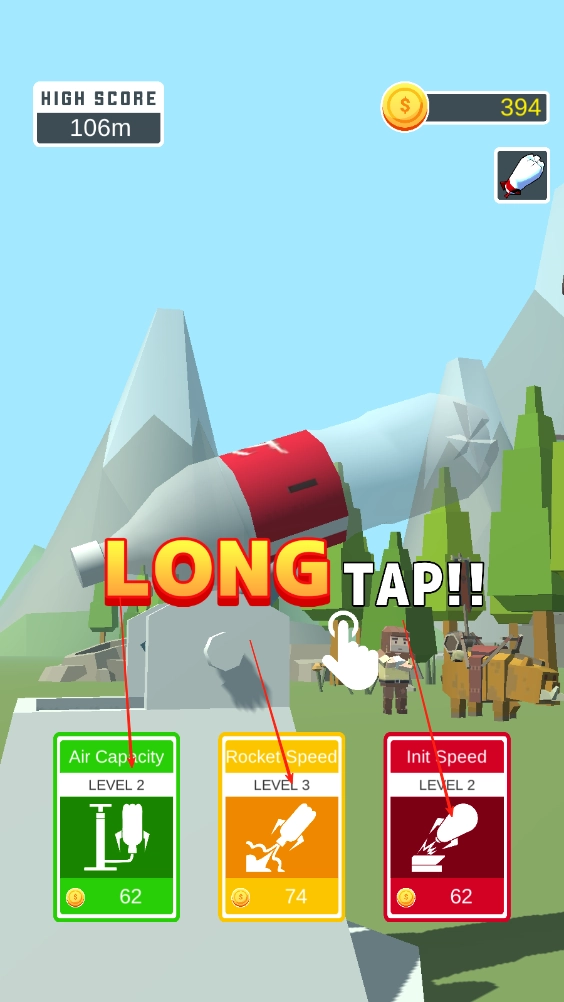 3、金币奖励在开始前可以升级空气的容量,以及瓶子的速度以及初始速度,这些都能让瓶子飞得更远,获得更高的奖励。