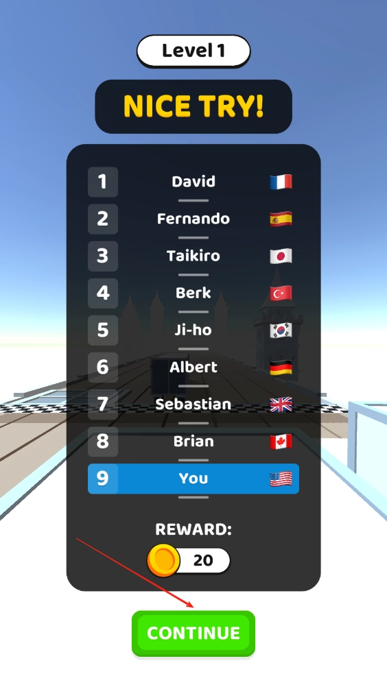 3、闯过终点之后,会根据当下的排名进行颁发奖励,奖励可以购买角色皮肤,以及更换背景场景。
