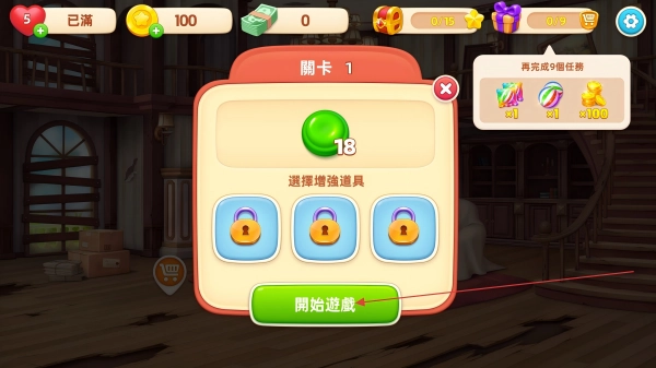 1、启动游戏宝贝大厦家居改造,点击【開始遊戲】按钮进入关卡。