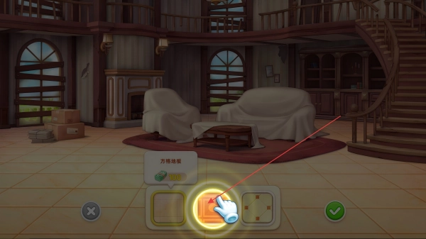 4、消耗100钞票点击【方格地板】,更换房间地板样式。