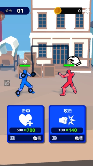 2、进入对打界面,首先观察敌人动向,在火柴人周围画出攻击轨迹(直线=直拳/弧线=踢击),长按画线可蓄力释放必杀技,精准命中会触发慢