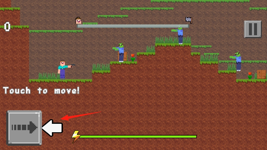 1、进入游戏后抵达主界面,依据箭头提示点击“Touchtomove!”区域,借助左侧的箭头键操控持枪角色进行移动。