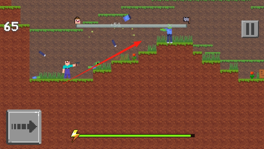 2、在前进过程中,会遇到绿色僵尸敌人,需要操作拿枪的手指向前,自动手动射击,清理路径障碍。