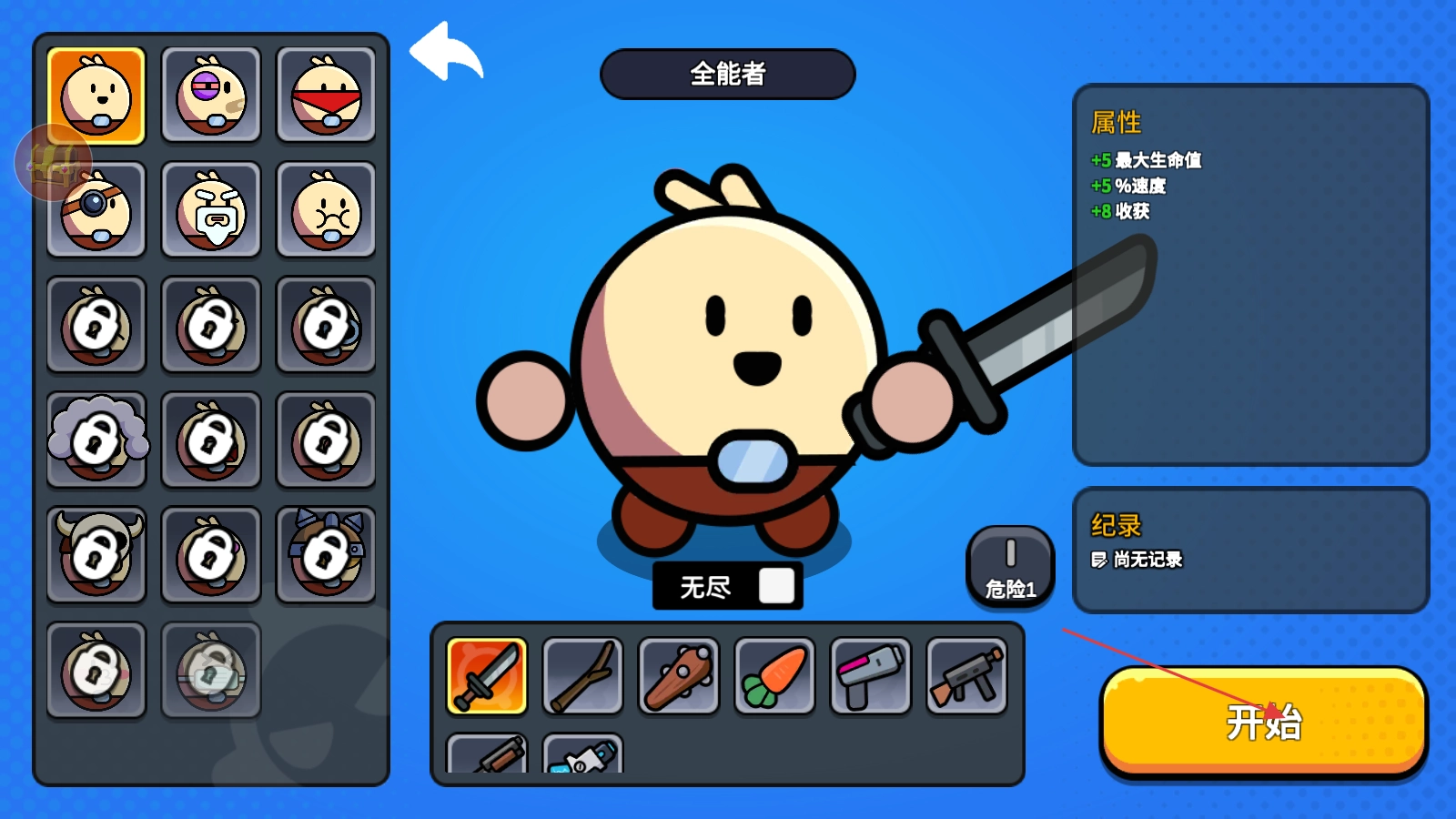 2、点击选择【全能者】,配顺手武器,点击【开始】,进入游戏场景。