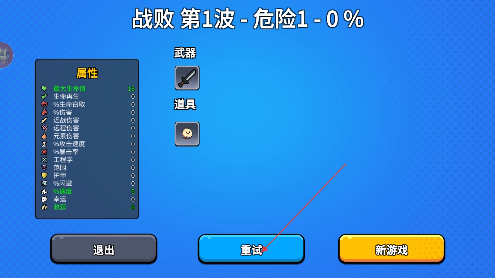4、查看结算界面,点击【重试】,重新挑战关卡。