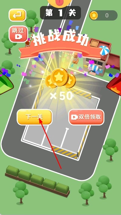 3、在移动车辆过程中,观察车辆的停放位置和相互之间的阻挡关系,成功将目标车辆开出停车场后,获得相应的金币奖励,进入下一关卡。