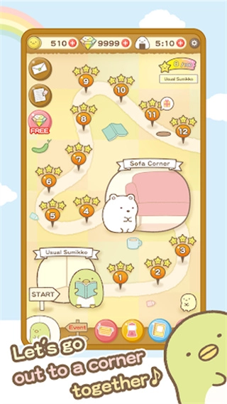 1、操作方式简单易懂,搭配Q萌的角落角色,让玩家无论何时何地都能轻松上手,释放压力;