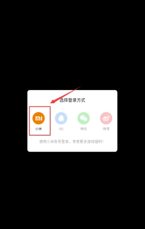 1、点击小米图标,通过小米账号登录游戏。