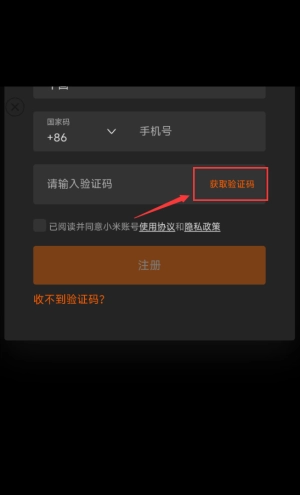 3、点击获取验证码,等待获取验证码。
