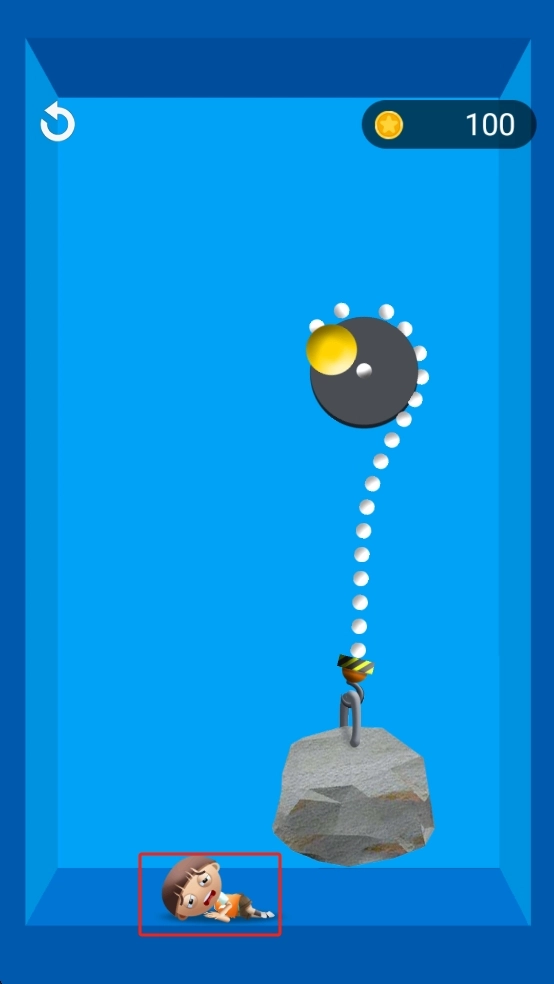 2、黄色球沿规划轨迹下落,借助黑色道具辅助,成功击破蜜蜂,让下方被困的小孩脱离危险处境,推进救援进程。