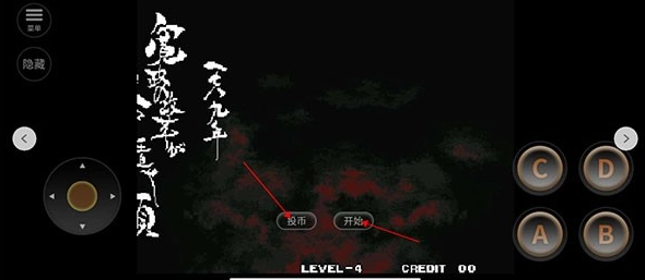 1、先安装好《侍魂4:天草降临》这款游戏,之后进入游戏界面完成投币操作,再点击开始按钮即可。